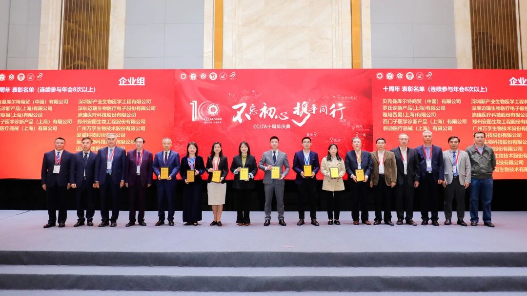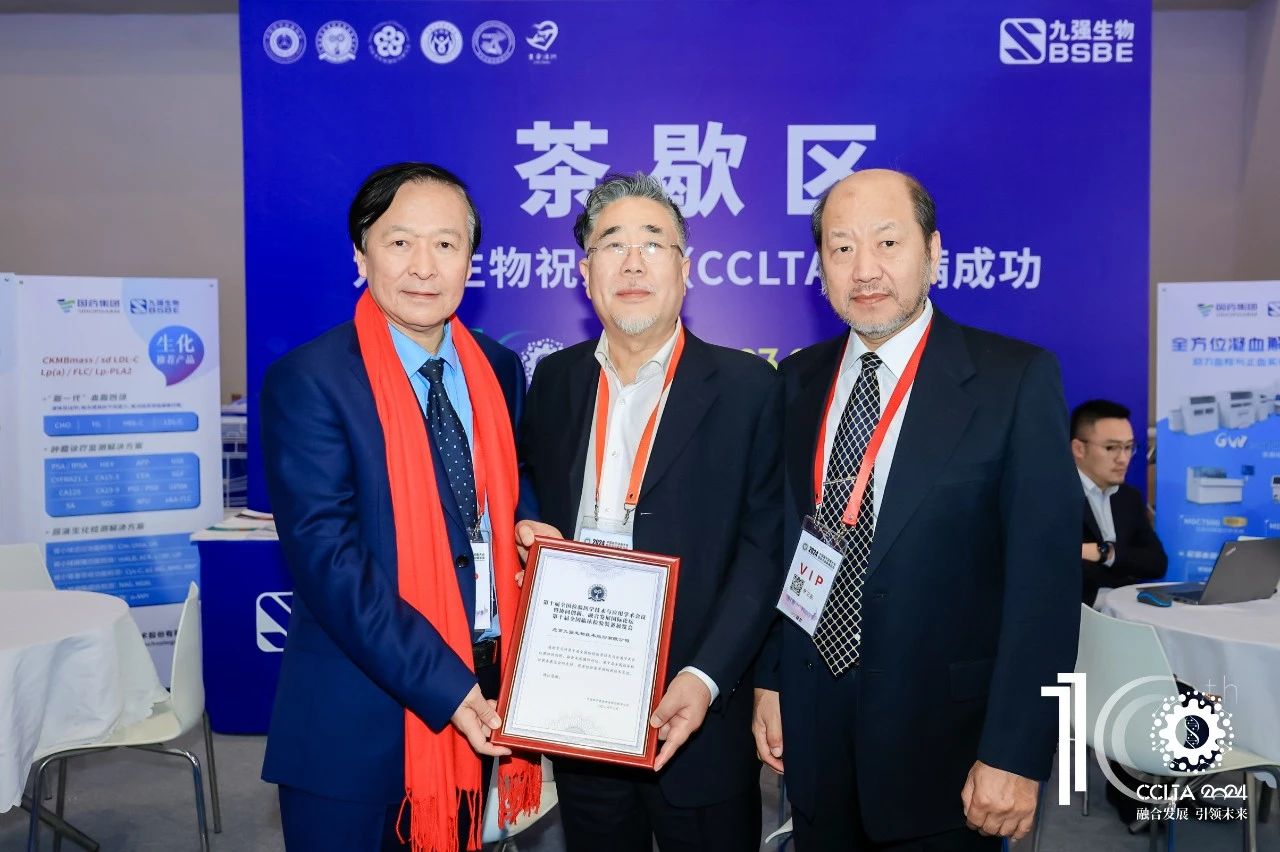 大會(huì)期間,中國(guó)醫(yī)學(xué)裝備協(xié)會(huì)檢驗(yàn)醫(yī)學(xué)分會(huì)第三屆委員會(huì)第三次全體委員會(huì)議同步召開,九強(qiáng)生物董事長(zhǎng)鄒左軍先生出席并上臺(tái)領(lǐng)取十周年企業(yè)感謝狀。CCLTA迎來(lái)十周年,在深耕學(xué)術(shù)、以發(fā)展為中心的精耕理念下,實(shí)現(xiàn)檢驗(yàn)醫(yī)學(xué)事業(yè)的大步拓新。
